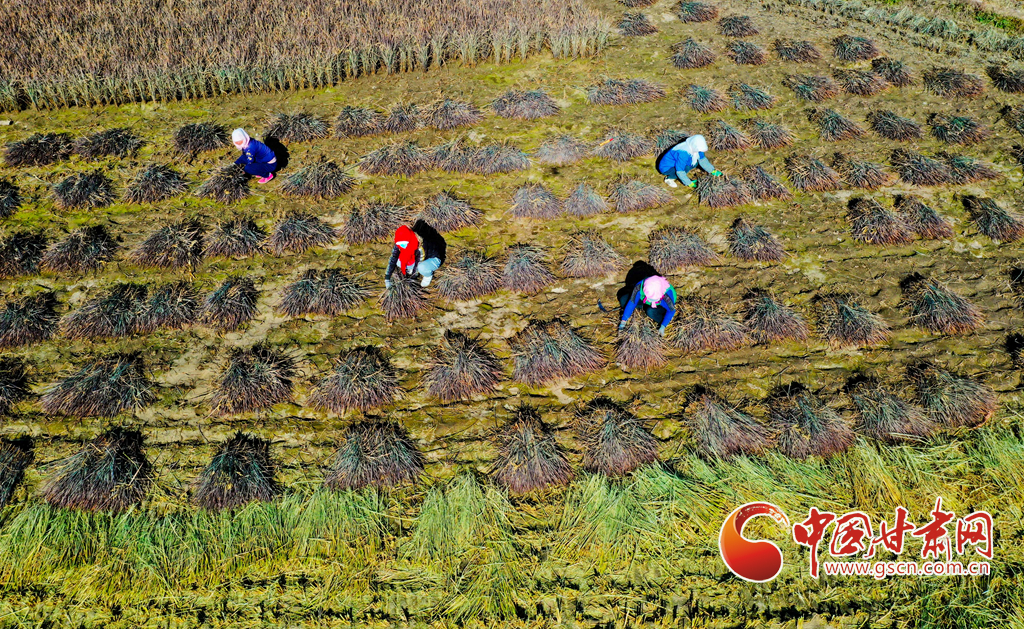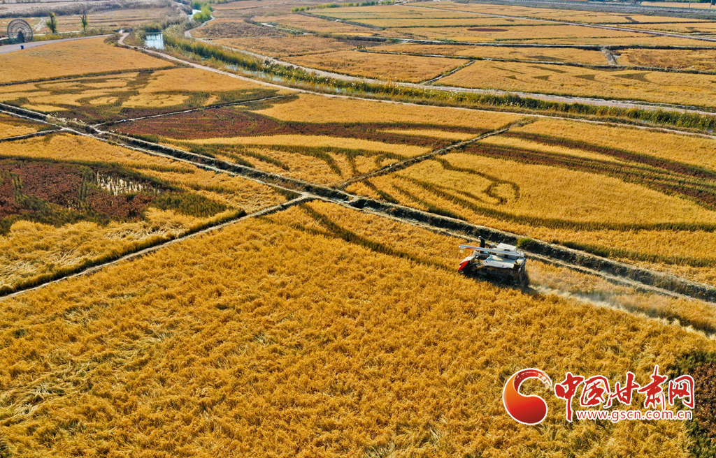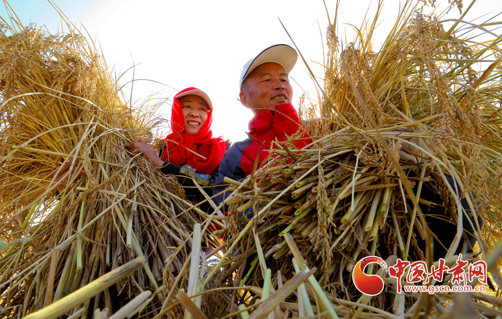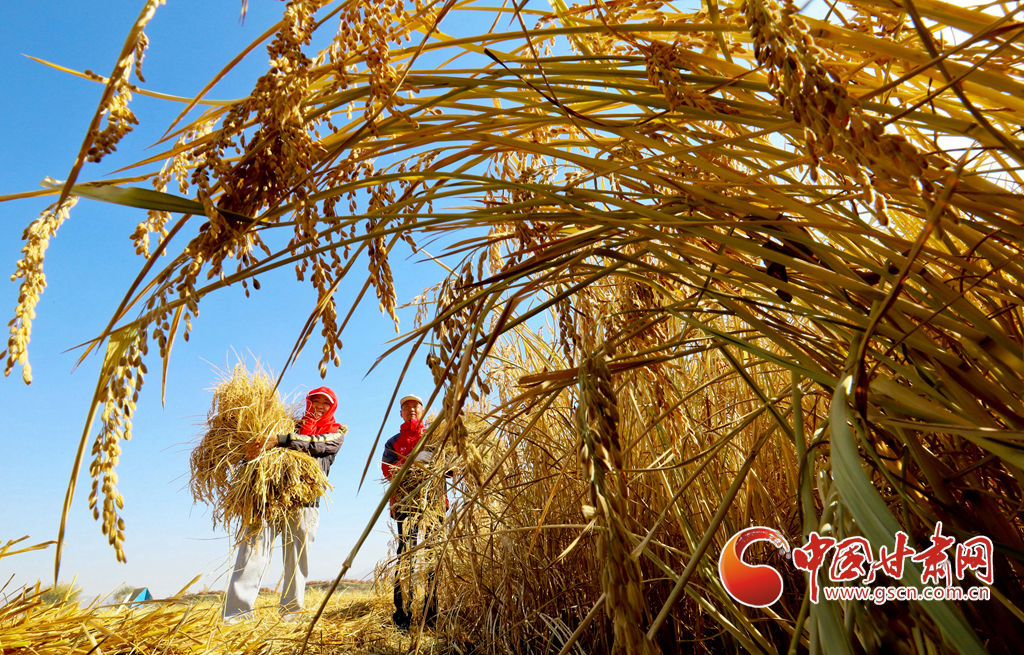 10月21日,位于祁連山下的甘肅(su)省張(zhang)掖市(shi)甘州區(qu)烏江鎮新河(he)田園綜合(he)體內,農(nong)戶們正(zheng)在收割成熟的高原水稻(dao)。