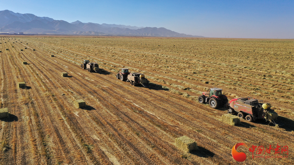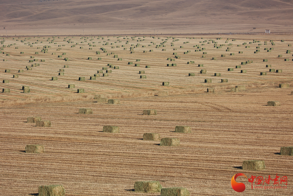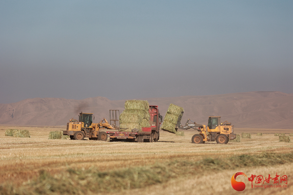 11月9日,甘肅山(shan)丹(dan)馬(ma)場正(zheng)在對(dui)此(ci)前收割晾(liang)曬的(de)21萬畝燕麥草打包運(yun)輸,一輛輛大型農(nong)用機械穿(chuan)梭田間(jian)忙碌(liu)作業。