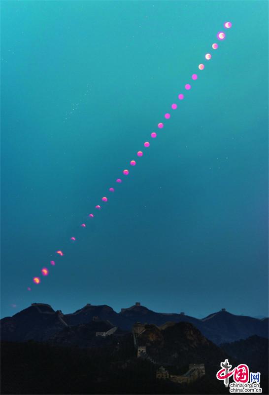 11月8日,月全食(紅月亮)天象驚艷亮相金山嶺長城。(紀正權 張愛(ai)東)