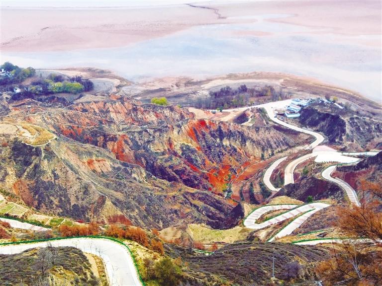 初冬時節的劉家峽庫區沿岸,盤山公路、丹霞地貌與碧水構成了一幅多彩畫卷