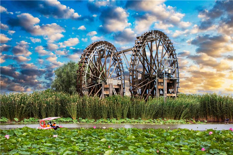 銀川市濕地(包含河流水域)面積531平方公里(80萬畝),占市域土地總面積7.65%,人均濕地面236平方米,是全國的6倍,市區濕地率達到10.65%,濕地保護率達到78.5%,2018年被評為我國首批“國際濕地城市”。鳴翠湖位于興慶區掌政鎮,總規劃面積8840畝,是歷史上銀川“七十二連湖”重要組成部分,是中國西部地區和黃河流域首家國家濕地公園、“國內首個立體生態荒漠化濕地成功修復力作”、國家水利風景區、國家4A級旅游景區,享有“中國最美濕地公園”“中國生態保護最佳濕地”等美譽。銀青公路穿湖而過,將其分為南北兩湖,其中:南湖為濕地生態保護核心區占地3845畝,只進行濕地保護與恢復性建設;北湖占地4995畝,進行濕地景觀建設和濕地生態旅游項目的開發經營。鳴翠湖湖泊面積占湖區面積的80%,景區生物多樣性富集,有維管植物109種、水生浮游植物69種、鳥類97種。湖光瀲滟、蘆葦蕩漾、楊柳依依、水車吱吱、魚翔淺底、百鳥鳴翠,遠望水鷺雙飛起,近看風荷一向翻;接天蓮葉無窮碧,映日荷花別樣紅,在我國西北干旱地區和黃河沖積平原區域具有典型性和代表性。