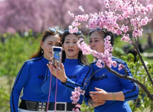 3月8日,游人在都江堰市青城山鎮“問花村”自拍(pai)