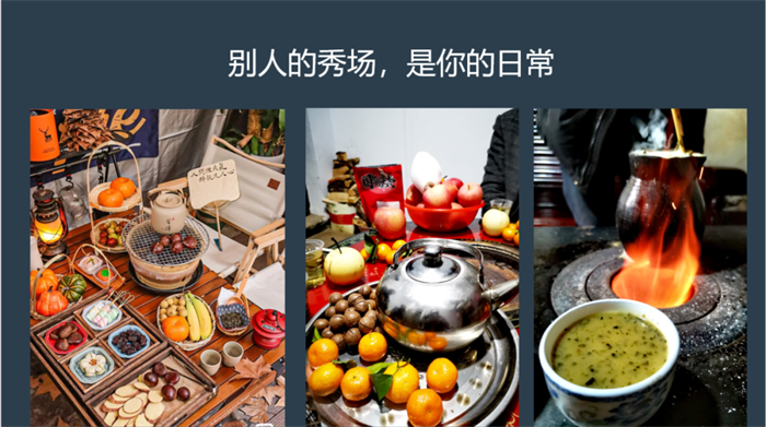 文旅產品的(de)創(chuang)新,很重要(yao)的(de)一(yi)點(dian),就是“本(ben)土(tu)化(hua)文化(hua),文化(hua)本(ben)土(tu)化(hua)”。比如,去年下半年的(de)時候,“圍爐(lu)煮(zhu)茶”突然在(zai)都市年輕(qing)消費(fei)群(qun)體中火了(le),先是出現在(zai)露營地,三(san)五成(cheng)群(qun)的(de)年輕(qing)人(ren)圍著炭燒(shao)爐(lu),煮(zhu)茶、烤紅(hong)薯(shu)、烤水果、聊天,人(ren)均花費(fei)數百元不等。后來逐漸衍(yan)生到民(min)宿、酒(jiu)店(dian),春節期間,家庭中的(de)“圍爐(lu)煮(zhu)茶”也興起,這似乎又是一(yi)項傳統的(de)回歸。