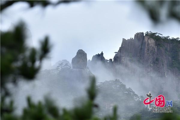 7月22日下午,安徽黃山風景區暴雨洗禮之后,漫山清秀俊逸,山石似黛,蒼松翠綠,云霧飄渺間,時而煙云繚繞如輕紗飛舞,時而又在千峰萬壑中波濤涌動,與奇松、怪石相映成趣,美如仙境。