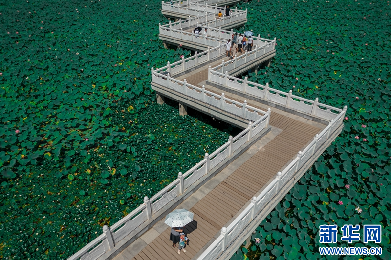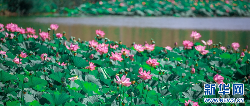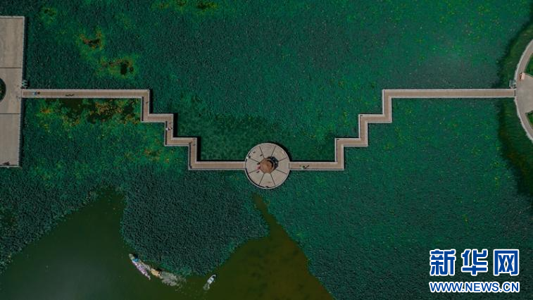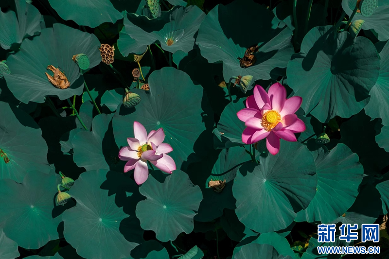 近日,在甘肅(su)省白銀(yin)市白銀(yin)區水川黃河濕地公園,滿(man)池荷花(hua)嬌(jiao)艷、荷葉(xie)(xie)青翠,藍天(tian)、碧水、嬌(jiao)花(hua)、翠葉(xie)(xie)構(gou)成(cheng)了一幅秋日美景圖。新華網(wang)發(郭宏 攝)