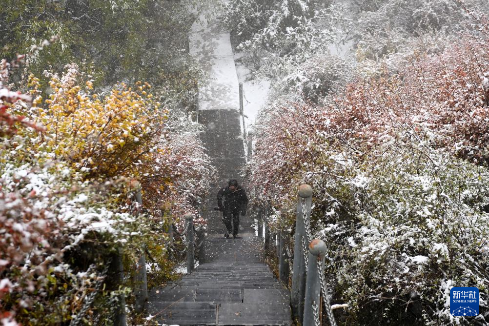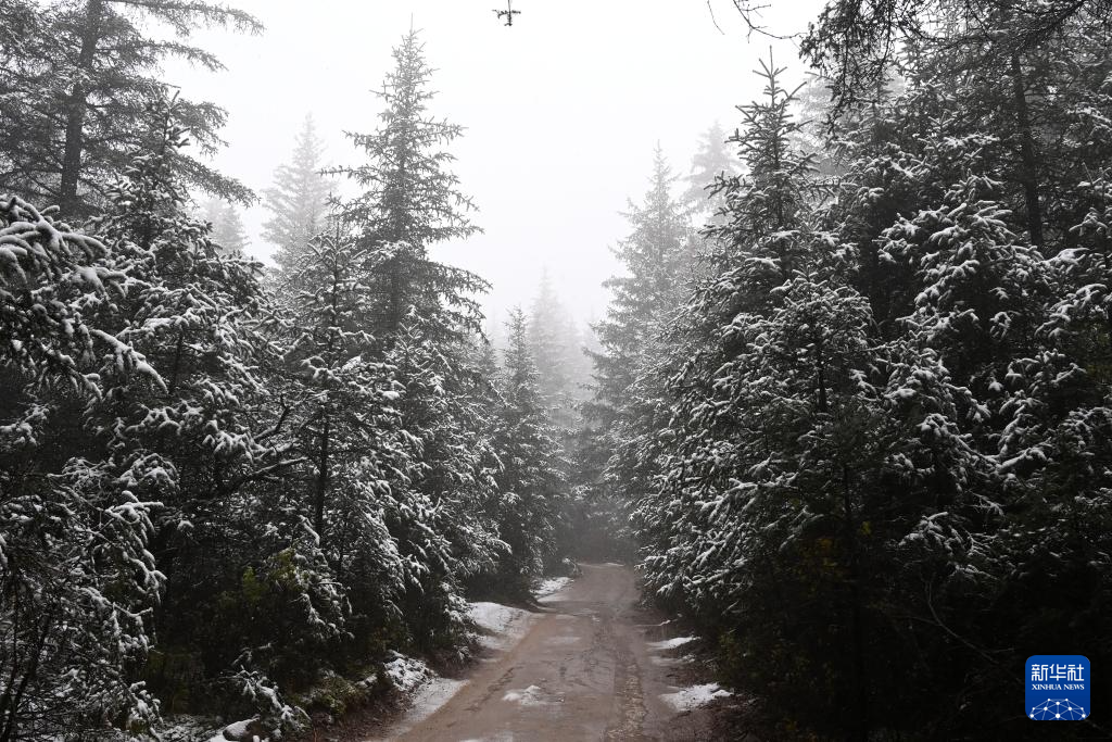 金秋時節,甘肅省張掖市肅南裕固族自治縣境內的祁連山脈迎來一場降雪,云杉翠柏與皚皚白雪相映成趣,美不勝收。