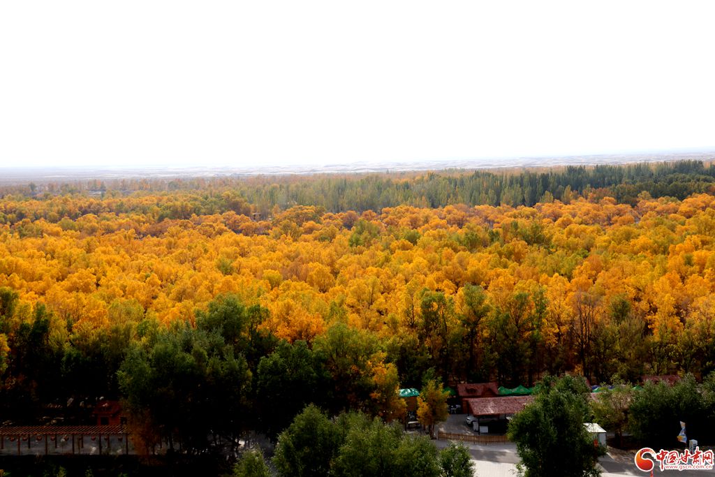 秋高氣(qi)爽,金塔沙(sha)漠胡(hu)楊(yang)林(lin)景區(qu)進(jin)入(ru)最佳觀賞期(qi),大(da)片胡(hu)楊(yang)由翠綠轉成金黃,與湛藍的天空交相輝映。在(zai)蒼(cang)茫大(da)漠之上,萬畝胡(hu)楊(yang)層林(lin)盡染,形態各異的胡(hu)楊(yang)巍然(ran)屹立,依水而生。