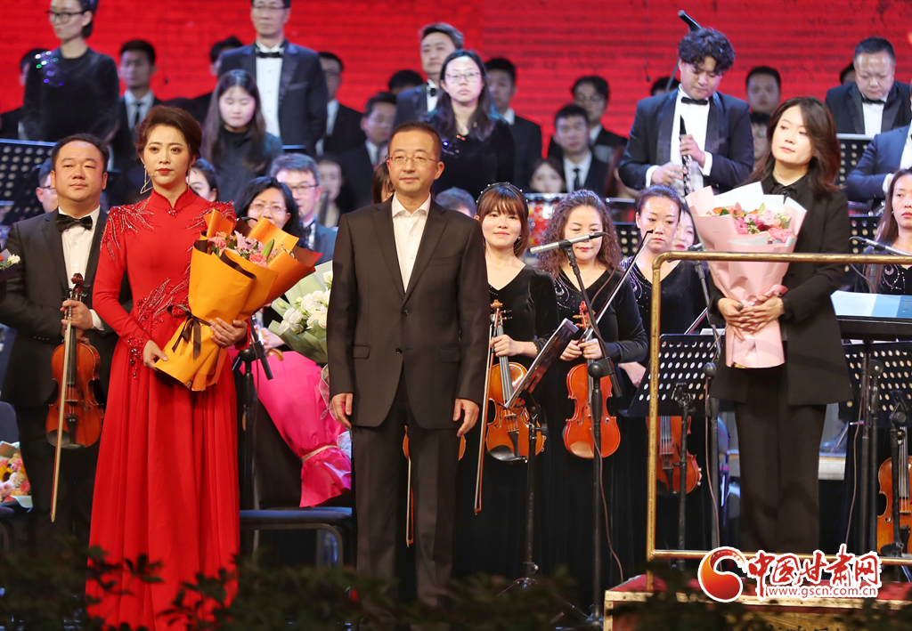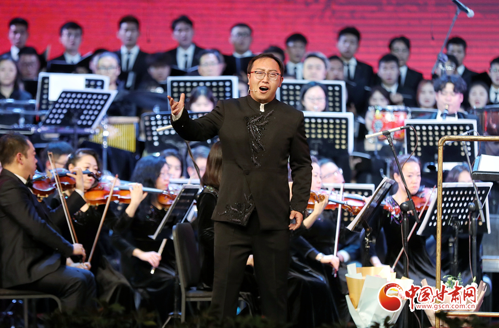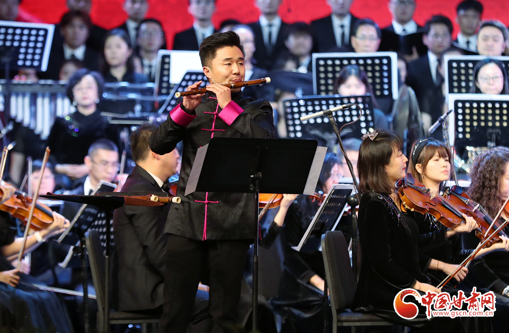 上半場演出,管弦樂《吉祥祁連》 、竹笛與樂隊《花兒隨想》、合唱《月牙泉的傳說》《黃河少年》、獨唱與合唱《簡牘》等陳世祥原創作曲作品接連亮相。管弦樂《吉祥祁連》全曲分為情歌、酒歌、牧歌、歡歌,刻畫了絢麗多彩的民族風情以及祁連山下各族兒女對美好生活的無限向往。竹笛與樂隊《花兒隨想》以鄉間少年參與花兒會的所見所想為線索,描繪出花兒會上從晨曦時刻到落日余暉的畫面,將西北花兒歌詠會上的山水風光,晨夕變幻、巧遇少女、訴說心意、慶典炫技的豐富場景徐徐展開。獨唱與合唱《簡牘》是一首用“行香子”詞牌來吟誦甘肅簡牘文化的藝術歌曲,“簡牘斷章,寥寥數行”,循著一枚枚簡牘的歷史記憶,回溯一幕幕西域往事,生動地呈現出中華文明包容開放的姿態印記。