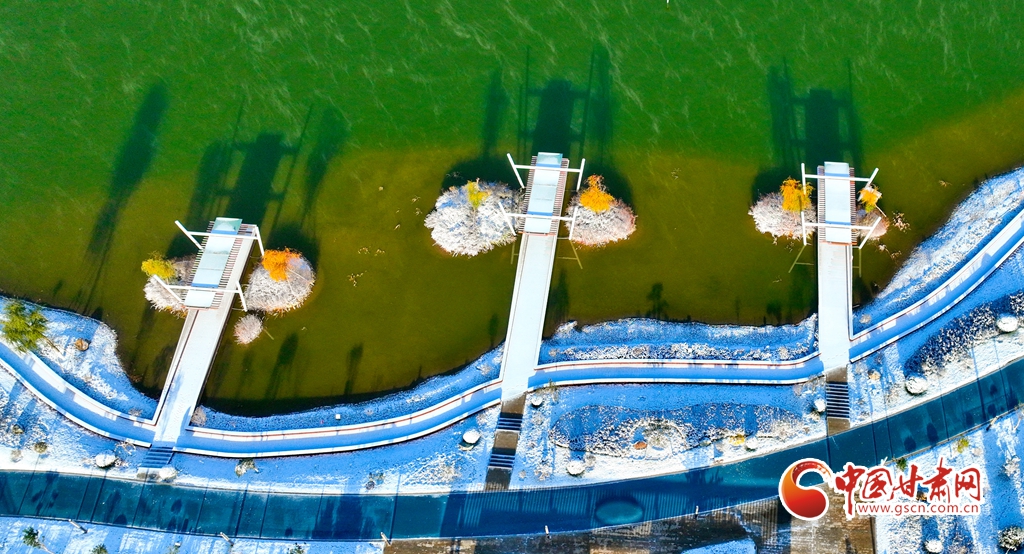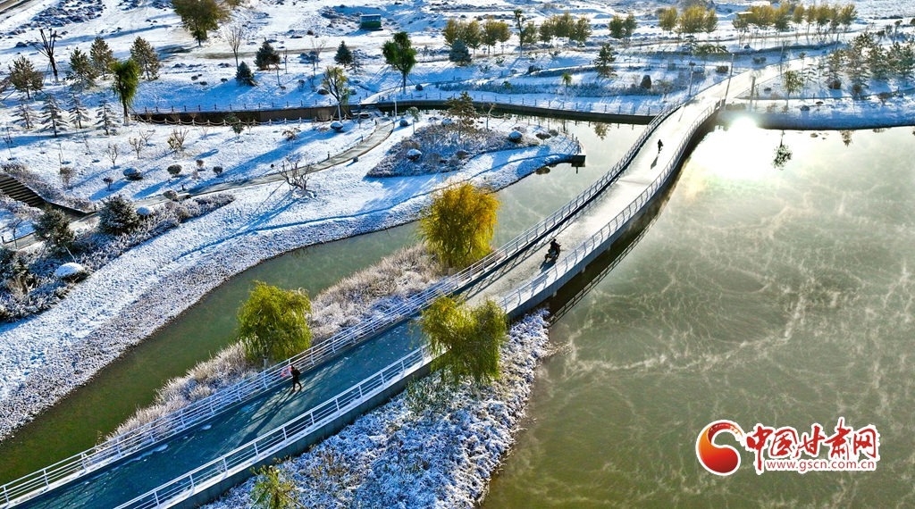 11月5日,受(shou)寒潮侵襲,甘肅(su)省(sheng)張掖(ye)市出現(xian)降溫(wen)降雪天氣。雪后初晴,張掖(ye)市中央文化(hua)公園內,銀(yin)裝素裹(guo),景色(se)迷人,宛若(ruo)畫卷。
