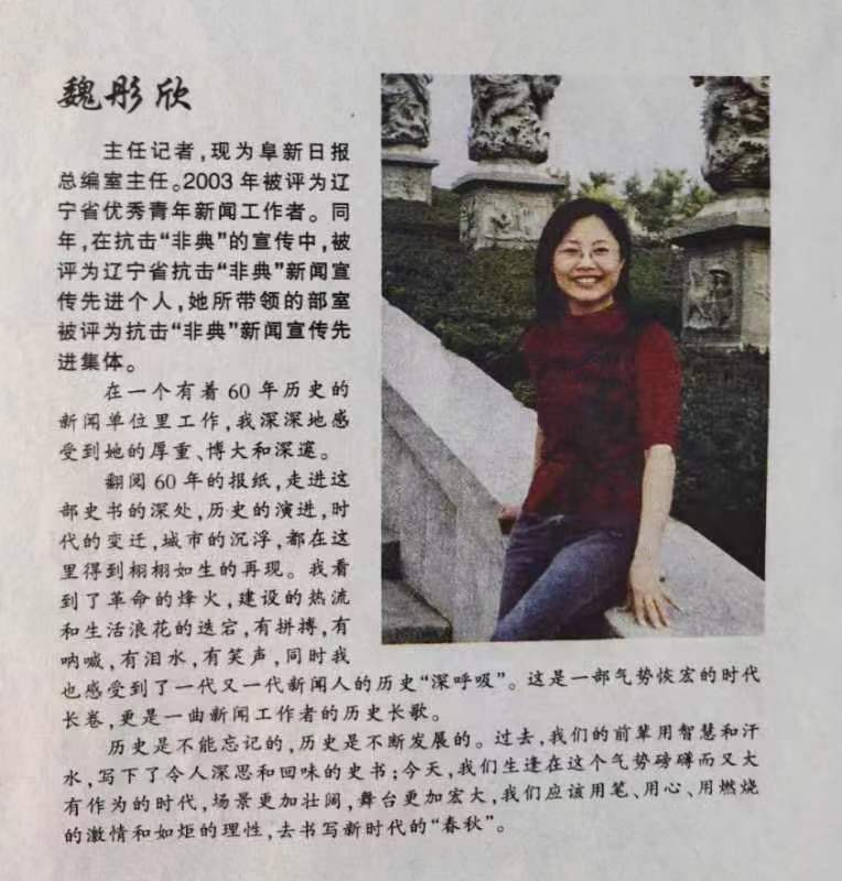 魏彤欣在阜新日報創刊60周年發表的感言。