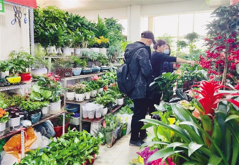花卉帶給人們美的愉悅和享受,用花卉為溫馨的家增添色彩,也用花卉扮靚心情,迎接即將到來的春節。店主劉女士和愛人正在打理花店,她說,花卉作為室內軟裝的一部分,現在已走進大眾家庭。以前老人養花,喜歡郁郁蔥蔥,綠得一大片的那種,現在年輕群體買花則更加注重花卉的形態美、意境美,大家的審美層次在提高,對花卉的精神需求也在提高。