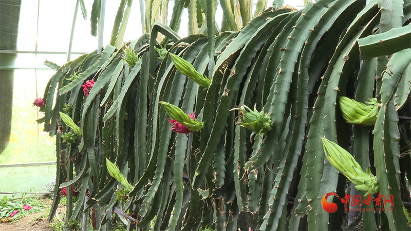 “咱們剛才看到的是從廣西引進的火龍果,它是紅心品種,火龍果的嘗試很成功,現在目前的產量也很不錯,今年正是豐產年。”合作社負責人李隴兵說道。