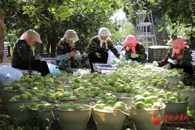 初秋時節,走進高臺縣宣化鎮林杰新品梨基地,香甜醉人的早酥梨猶如一盞盞黃燦燦的“小燈籠”掛滿枝頭。梨園內,100多名季節工忙著采摘、精選、套袋、裝箱,處處洋溢著豐收的喜悅,基地300畝早酥梨搶鮮上市。