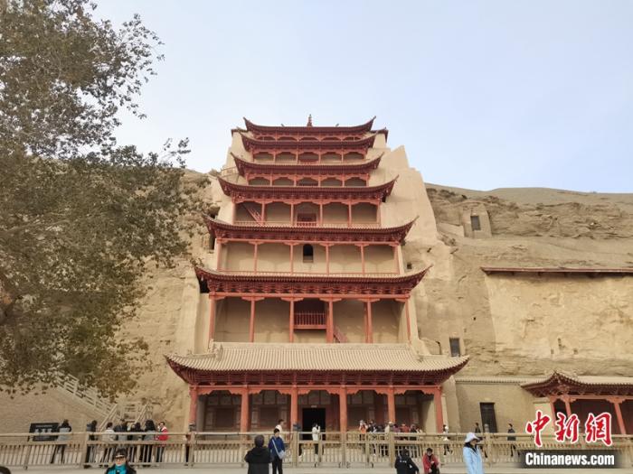 游客在敦煌莫高窟參觀。記者 上官云 攝
