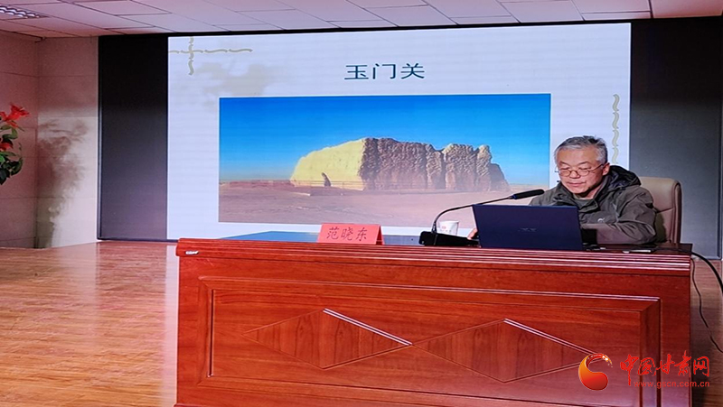 酒泉市肅州區博物館范曉東研究員以《何以酒泉-文物中的酒泉故事》為題,立足肅州區文博歷史,向與會師生介紹了古代絲綢之路、河西走廊歷史文化變遷、重要考古發現等,鼓勵同學們努力學習,深入了解中華優秀傳統文化,堅定文化自信,將來為建設家鄉貢獻力量。