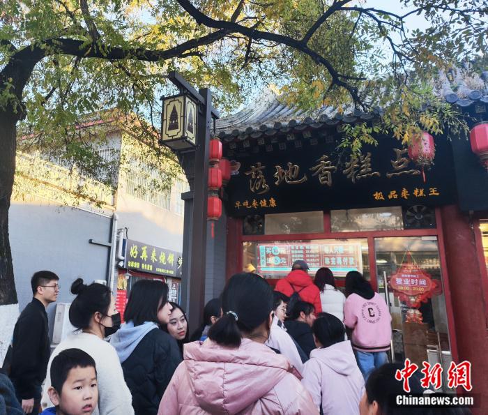 漁陽古街上,游客正排隊購買一家“網紅”棗糕。劉越 攝