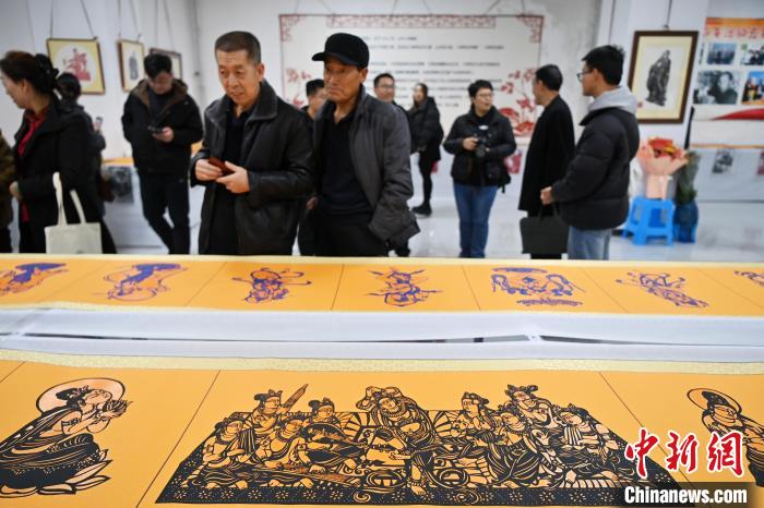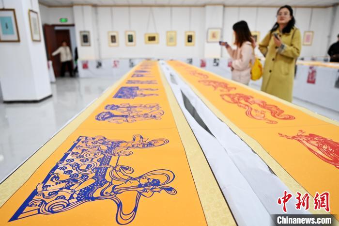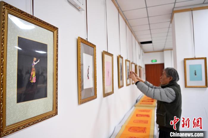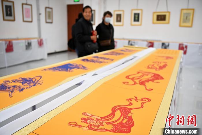 11月19日,“蘭州剪紙”非遺傳承人李自新、李麟桐剪紙藝術展在甘肅省蘭州市開幕,展出以敦煌壁畫、隴上風物等為題材,精心創作的剪紙作品。圖為展出的剪紙作品。中新社記者 九美旦增 攝
