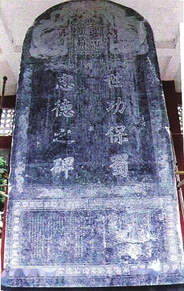 碑陽額刻二龍圖,篆“皇帝宸翰”,字徑0.22米,碑身刻宋寧宗書“世功保蜀忠德之碑”八字,楷書豎行2行,行間刊有篆書“敕令寶璽”和楷書“修政殿書”八個小字,四周環刻八龍騰云圖。碑文刻吳挺之子吳曦自記《感恩表記》,碑文楷書計8461字,內容記載吳氏三代抗金保蜀的功績。