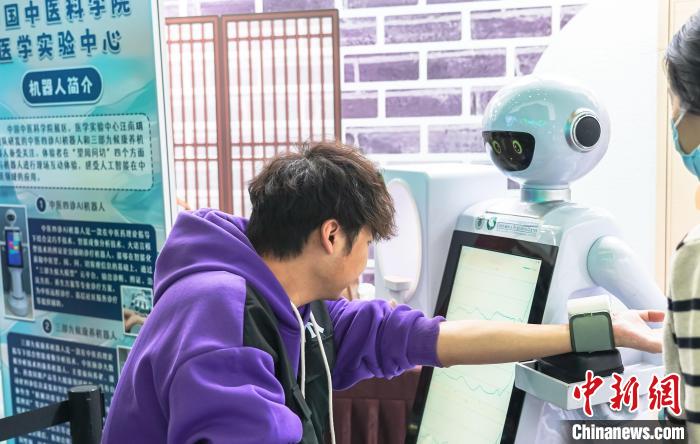 “灸(jiu)童中醫藥(yao)文(wen)化周”活動(dong)上觀眾體驗與機(ji)器人互動(dong)。中國科技館供(gong)圖