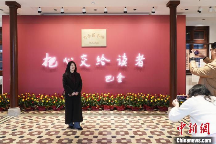 11月25日,巴金先生誕辰120周年,巴金圖書館在上海揭幕,實現了巴老生前想要創辦一座圖書館的心愿。圖為觀眾在巴金圖書館留影。中新社記者 張亨偉 攝