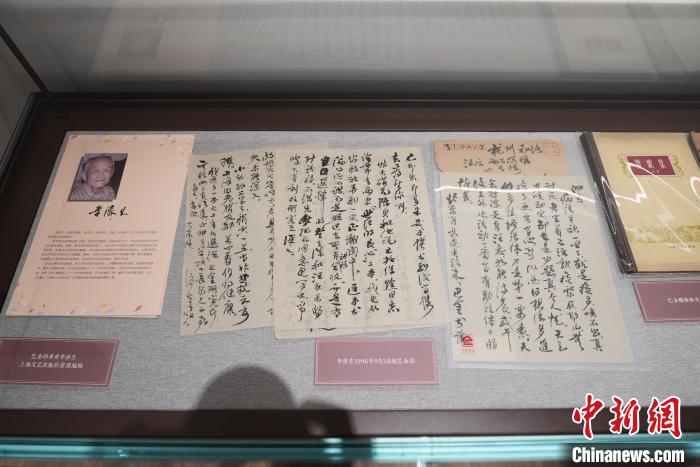 圖為巴金(原名:李堯棠)與弟弟李濟生的書信展示。中新社記者 張亨偉 攝