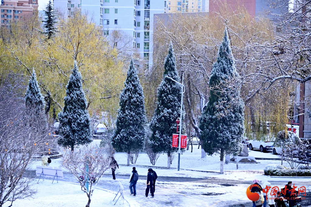 初雪似無數精靈,校園樹木如瓊枝玉葉,每一片雪花都融在蘭州城市學院的角落里。