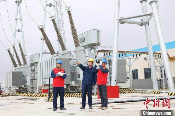 國網慶陽供電(dian)公司工作人員在(zai)華能翼珍風光電(dian)站巡視設備(bei)運行情(qing)況(kuang)。楊馥毓 攝