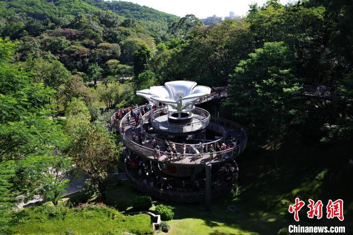 11月29日,廣(guang)東(dong)廣(guang)州,云蘿植物園(yuan)正式開園(yuan),游客漫步在(zai)空中園(yuan)林棧道“木棉(mian)道”。中新社記者(zhe) 陳楚(chu)紅 攝