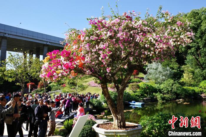 11月29日,廣東(dong)廣州(zhou),云蘿植物園正式開園,簕杜鵑專類園吸引游客賞花拍(pai)照。中新社記者 陳楚紅 攝