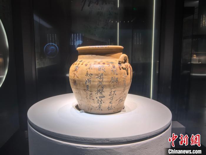 本(ben)次展出的(de)“七賢第一祖(組)”詩文瓷罐。 張雪盈 攝