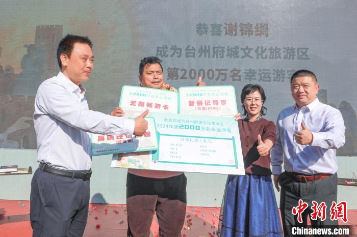 當日9時(shi)33分,臺州府(fu)城(cheng)(cheng)景(jing)區智慧旅游系統(tong)自動鎖定第(di)2000萬名游客所在(zai)的一支來自福(fu)建的旅行團(tuan),經過(guo)數據確認(ren)和復核,確定旅行團(tuan)成員(yuan)謝錦綢為第(di)2000萬名游客。臨海(hai)為其準備了包含大宋風華定制(zhi)游、府(fu)城(cheng)(cheng)十(shi)味(wei)大禮盒(he)、新榮記旗下品牌餐(can)廳(ting)尊享券、臺州府(fu)城(cheng)(cheng)IP形象文創禮盒(he)等禮品的“好事來臨”府(fu)城(cheng)(cheng)大禮包。