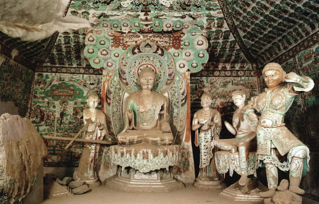 搬遷復原的洞窟內,不但保持了原來壁畫和塑像的原貌,洞窟內的其他部位,如坍塌壁面也與洞窟原貌基本相同。從南湖店搬來的新建洞窟是磚混結構的洞窟,我們對洞窟外墻面用礫石進行裝飾,這樣洞窟與周邊崖壁、洞窟相一致。這兩個洞窟被安置在莫高窟北區大沖溝中,既不破壞和影響原有洞窟,又使其與周邊崖面和洞窟融為一體。如果不被提醒,人們容易誤認為它們就是古代所建造的洞窟。