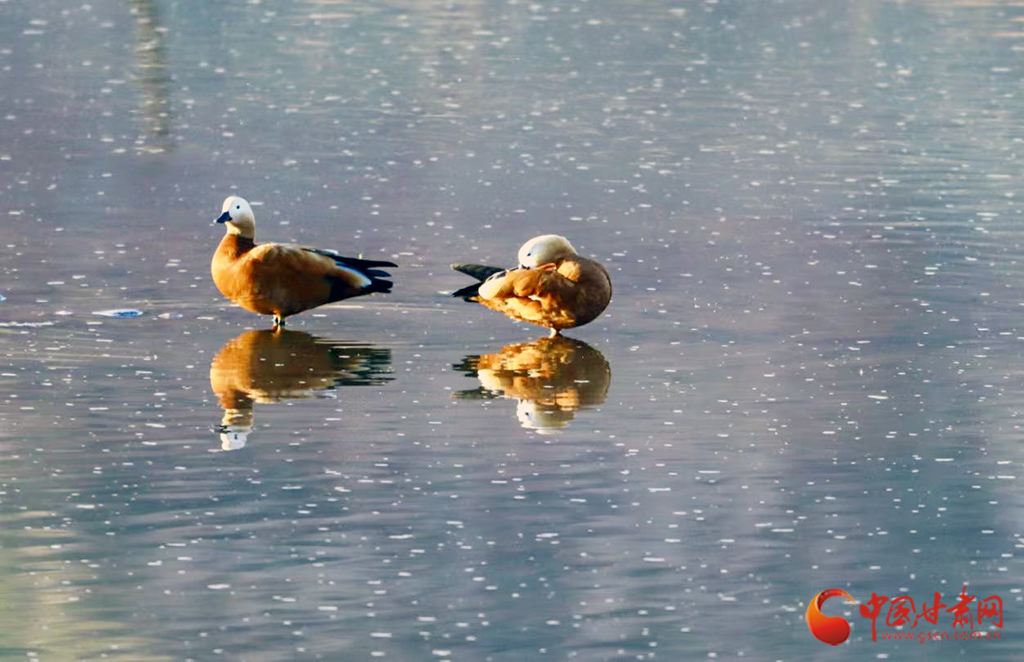 近日,平涼崇信迎來了數只水上客人——赤麻鴨。