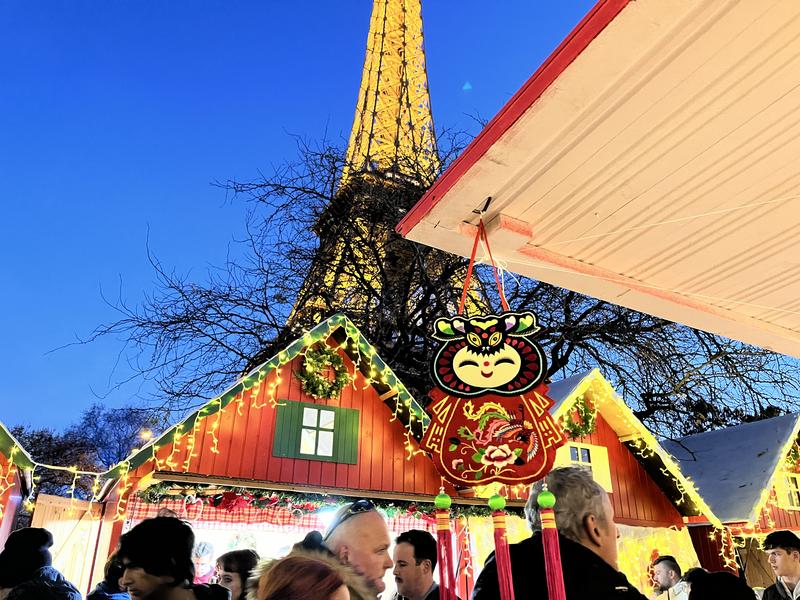 (法國巴黎(li)圣誕集市上的慶陽香包展位)