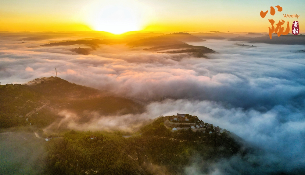 清晨陽光露臉,涌動的云海、青翠的山嶺、靜謐的村莊,把整個山頂裝扮得似“仙境”一般。