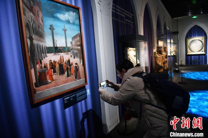 12月21日,“傳奇之旅:馬可·波羅與絲綢之路上的世界”展覽在四川博物院正式面向公眾開放。圖為來自意大利威尼斯科雷爾博物館的一幅木板油畫吸引參觀者。中新社記者 張浪 攝