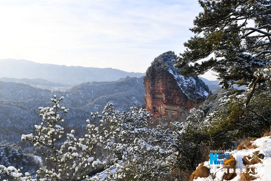 雪后初霽的麥積山宛如仙境。來源:新華網