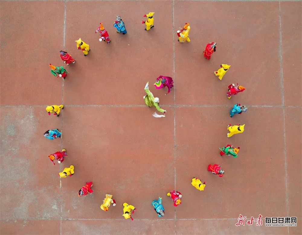 嘉峪關市文化館組織當地非遺地蹦子表演者排練,為2025年春節社火展演作準備。新甘肅·每日甘肅網通訊員 馬百旺