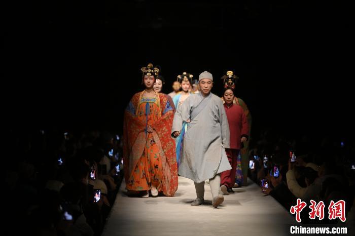 2025年1月9日晚,在甘肅敦煌大型室內情景體驗劇《又見敦煌》劇場內,游人在行走中觀看演出。中新社記者 李亞龍 攝