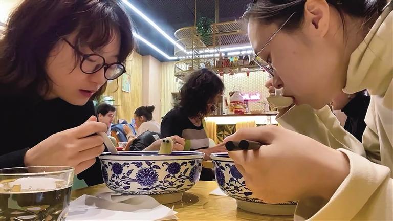 留學生吳恒芝和朋友品嘗蘭州牛肉拉面