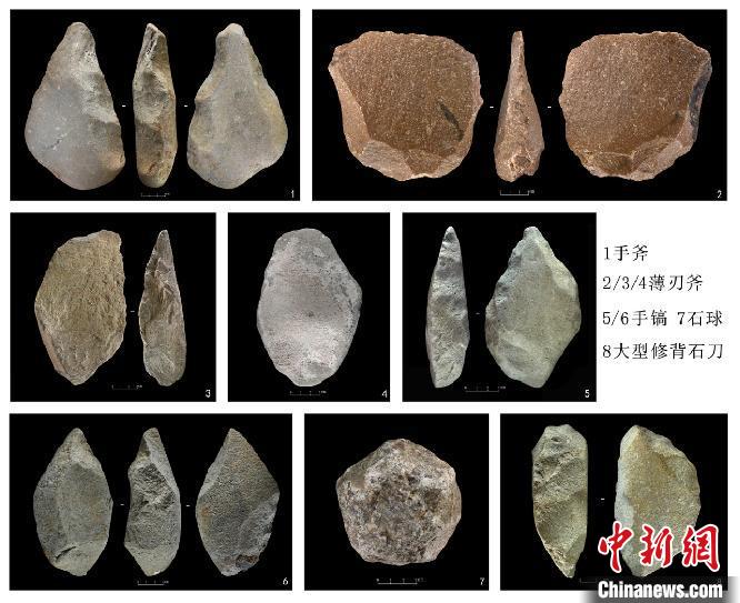 圖為河南汝州溫泉舊石器時代遺址出土的阿舍利技術工具組合。河南省文物考古研究院供圖