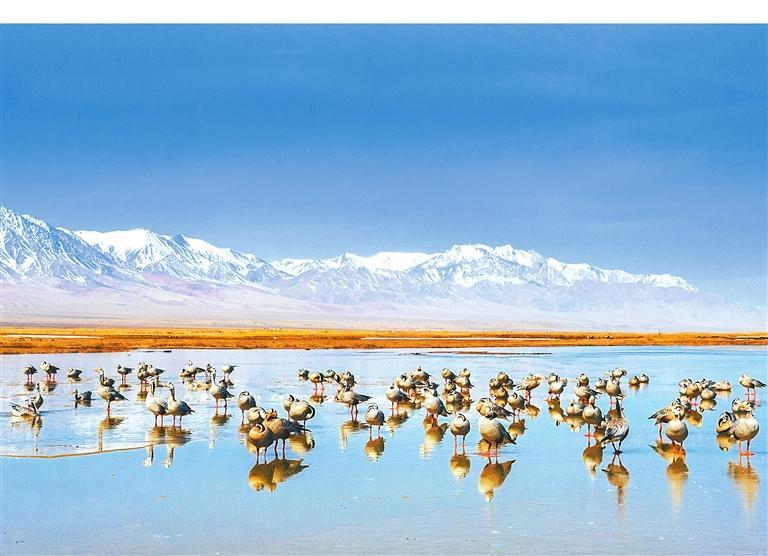 當祁(qi)連山(shan)的(de)(de)(de)雪線以(yi)肉(rou)眼難(nan)以(yi)察覺的(de)(de)(de)速(su)度后退時(shi),鹽池(chi)灣的(de)(de)(de)冰封鏡面開始出現裂紋。最(zui)先感知到這一變化的(de)(de)(de)不是(shi)融(rong)水(shui)沖刷出的(de)(de)(de)溝壑,而(er)是(shi)斑(ban)頭雁黃色的(de)(de)(de)喙。它們在(zai)(zai)三月(yue)底(di)的(de)(de)(de)晨昏線上劃過,雙(shuang)翅呼(hu)呼(hu)生風。冰凌碎屑尚未與雁羽摩擦,便已(yi)(yi)發出細密(mi)的(de)(de)(de)簌響,像是(shi)古(gu)琴開弦前(qian)的(de)(de)(de)調音。野馬南山(shan)與黨(dang)河南山(shan)兩山(shan)之(zhi)間形成的(de)(de)(de)盆地(di)內河流縱(zong)橫、湖泊密(mi)布,草甸、沼澤交錯,是(shi)斑(ban)頭雁和(he)其他水(shui)鳥世代棲息繁(fan)衍的(de)(de)(de)場所。盡管先頭部(bu)隊在(zai)(zai)3月(yue)下旬就已(yi)(yi)抵達這里,主力部(bu)隊卻要到4月(yue)上旬才會姍姍來遲。此時(shi)斑(ban)頭雁幼體已(yi)(yi)在(zai)(zai)越冬地(di)充分(fen)發育,羽衣上幾乎(hu)看不到如苔蘚(xian)般斑(ban)駁生長的(de)(de)(de)新羽,只是(shi)頭部(bu)的(de)(de)(de)兩條(tiao)黑帶(dai)不如父母深(shen)邃,這是(shi)它們少(shao)經風霜的(de)(de)(de)證明。它們降落在(zai)(zai)濕地(di)灘涂時(shi),雝雝鳴雁,那聲(sheng)音或許與兩千年(nian)前(qian)蘇武(wu)牧羊時(shi)在(zai)(zai)北海之(zhi)畔聽到的(de)(de)(de)有些許相似。