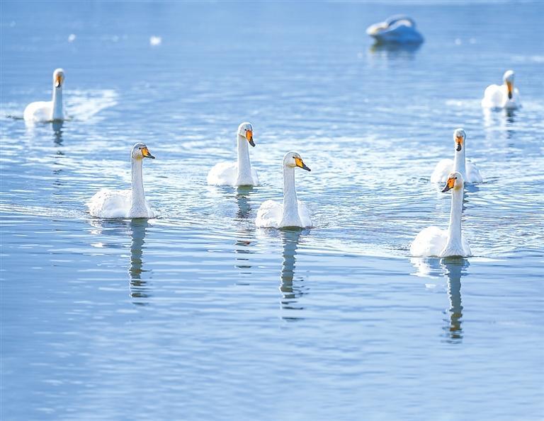 蘭州三江口濕(shi)地的冰(bing)封(feng)河畔(pan)上(shang),大(da)天(tian)鵝用喙基布滿冰(bing)霜的橙喙鑿開生存通道。這里是目前野生天(tian)鵝在蘭州的唯(wei)一越冬所,為冬日黃(huang)河增添了(le)一份靈動和(he)生機。這些北方來客(ke)的羽毛并非純白,頸部沾染(ran)鹽(yan)霜草漬(zi)后(hou)形成獨特的顏色與紋路,像是歲月在它們(men)身上(shang)留下的印(yin)記。當地組織了(le)巡護,并有(you)專人定期投飼。