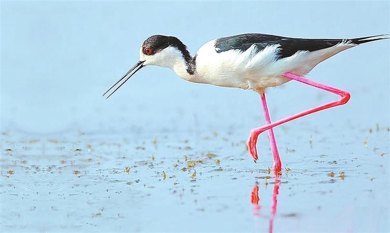 黑(hei)河濕地(di)的黑(hei)翅長腳鷸。