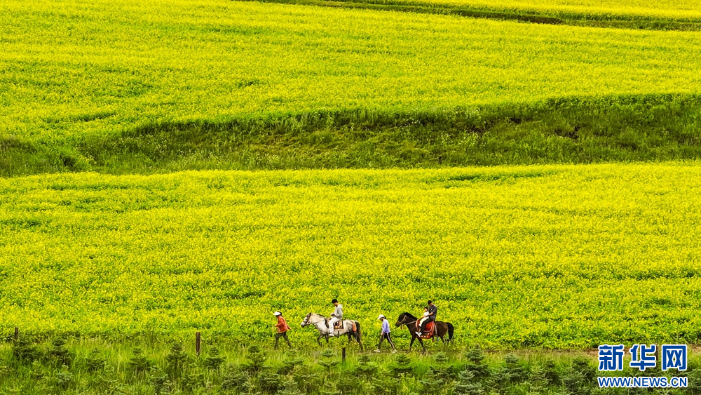 連日來,位于祁連山(shan)(shan)下的甘肅省張掖市民樂縣(xian)扁都口景區萬(wan)畝油(you)菜進入盛花期。金(jin)黃的油(you)菜花海與(yu)草(cao)原綠(lv)野相(xiang)連,空氣中彌(mi)漫的淡(dan)淡(dan)花香,醞釀山(shan)(shan)川,醉了游人。新(xin)華(hua)網發(王將 攝(she))