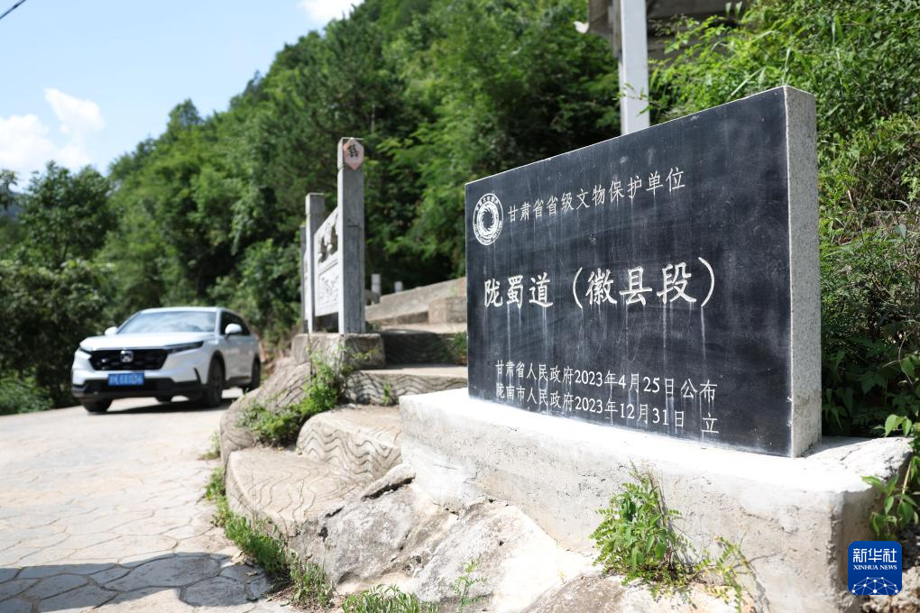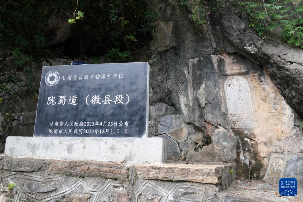 7月14日在甘(gan)肅省(sheng)隴南市徽(hui)縣大(da)河店鎮青泥(ni)村(cun)拍攝(she)的青泥(ni)驛石碑。新華社記者 陳斌(bin) 攝(she)
