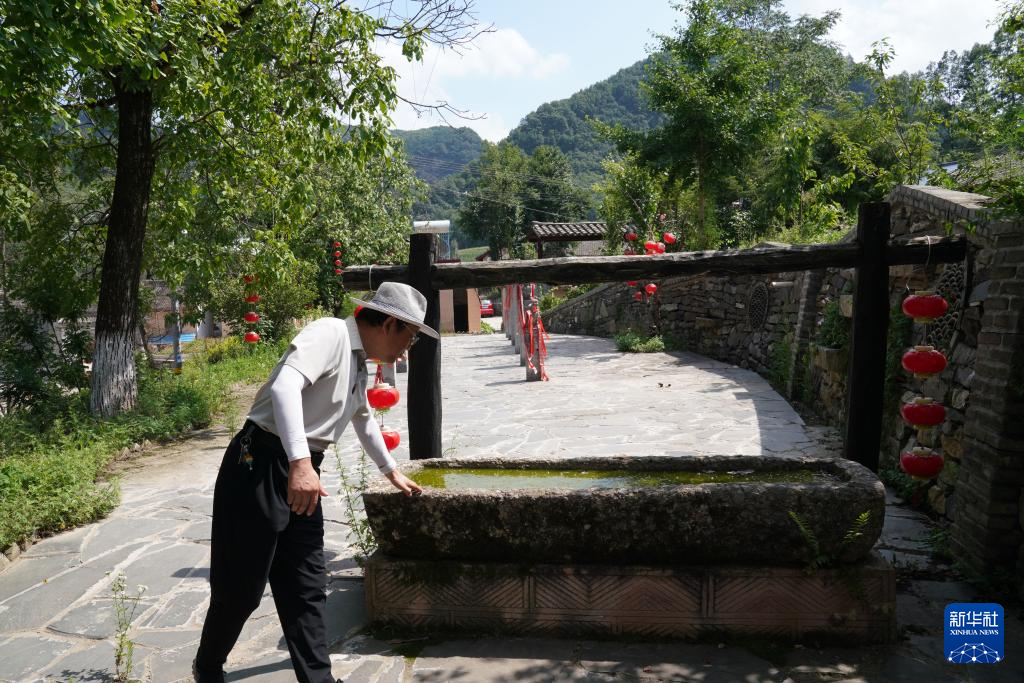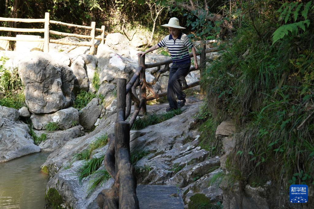 7月14日,游客在青泥嶺古(gu)蜀道遺存(cun)旁(pang)走(zou)過。新華社記者 馬寧 攝