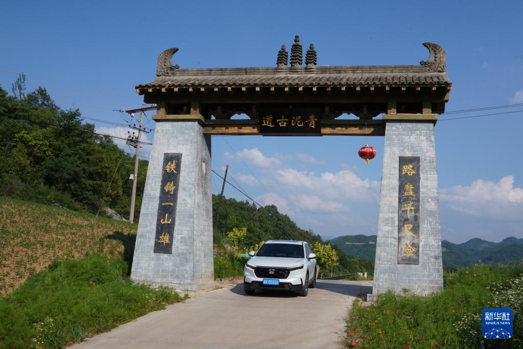 7月(yue)14日,一輛汽車行(xing)駛在(zai)青(qing)泥嶺上(shang)的鄉村(cun)公(gong)路上(shang)。新華社記者(zhe) 陳斌 攝(she)