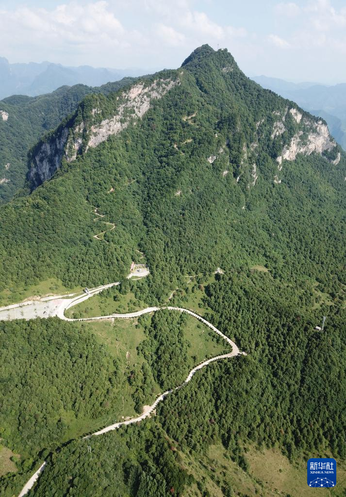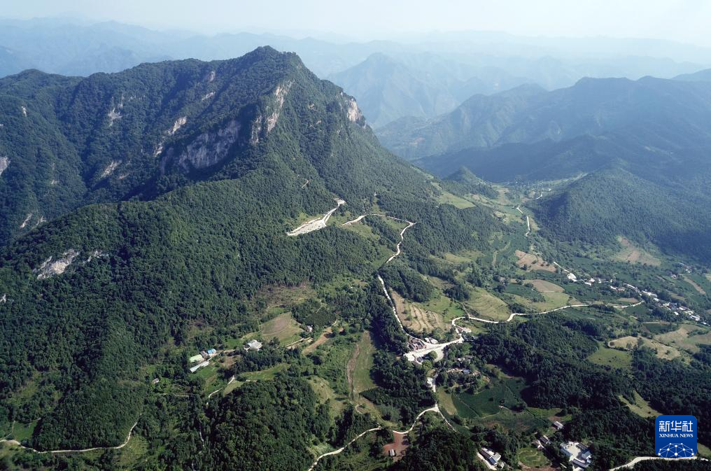 7月14日(ri)拍攝的青泥(ni)嶺主峰鐵山和(he)鄉(xiang)村道路(無人(ren)機照片)。新(xin)華社記者 馬寧 攝