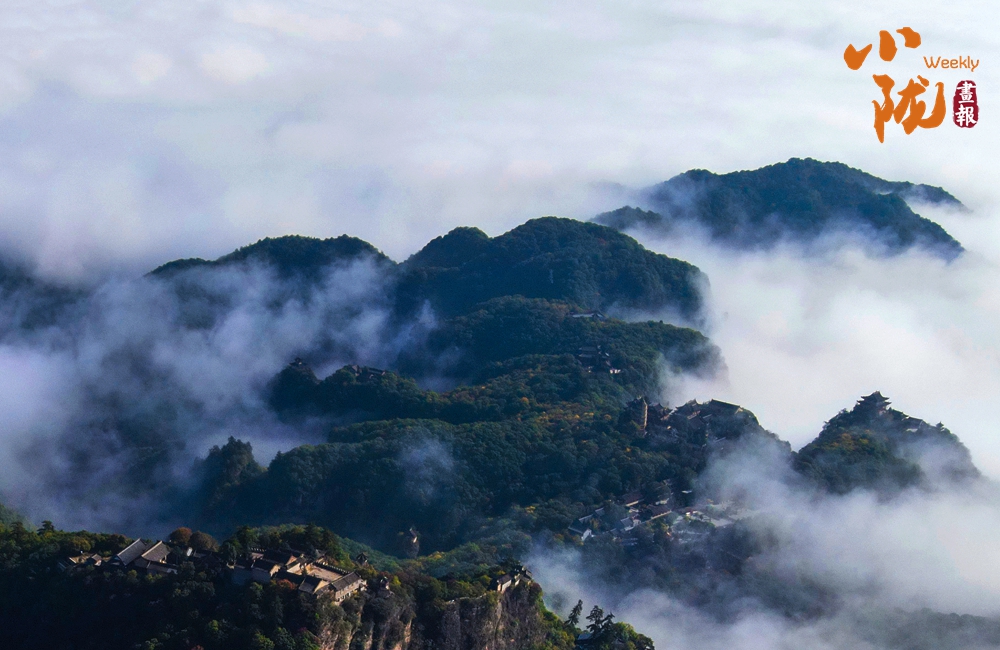 雨后初霽,云霧自幽谷翻涌(yong)升騰(teng),如浪濤(tao)席卷峰巒,遠處山影在云濤(tao)中若(ruo)隱(yin)若(ruo)現,恍若(ruo)蓬萊仙(xian)島。霧氣氤氳間,林海、亭閣(ge)若(ruo)隱(yin)若(ruo)現,恰似一幅流動的水墨丹(dan)青。